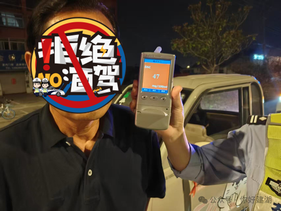 凌晨2时,建湖大队在水源路查获彭某某涉嫌酒驾,呼气式酒精检测结果为47mg/100ml。